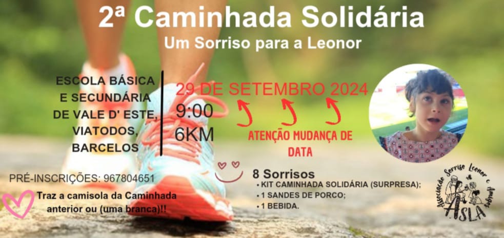 Caminhada Solidária Associação Sorriso Leonor e Amigos destinada ao publico em geral, não tendo de modo algum perfil competitivo.